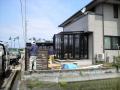 本日は天気も良くて工事がはかどりますね! 暖欄も仕上がりタイルにフェンスと着々と進めております。