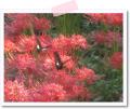 彼岸花の周りで蝶が2匹...