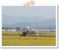 遠くに見える...稲を刈り取る機械(名前を知らない)は、