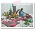 木製のレンガ道は、なかなかきれいに 並べられないです... 家が上手に作れなかったので、 葉っぱ風のポプリでごまかしました〜♪
