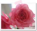 庭のミニ薔薇は、花が重くてうなだれているので.. グラスにいけました〜。.:*:・'°