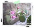 庭のミセバヤにピンクの花、発見〜**
