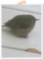 メジロが一羽..デッキに! きっと、窓ガラスにぶつかってしまったんですね〜*