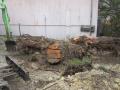 こんにちは 東です。 すいません。かなりサボっておりました。 言い訳すると長くなりそうなので割愛します。。。(笑) 先日、個人のお宅にある桜の木を伐採・抜根しました。 写真はすでに伐採されたあとです。 伐採作業も周辺が住宅なのでかなりの技術を要したのですが、 根株の抜根が壮絶だったので。。。 これもまた割愛します。。。 作業員二人で一日かけてようやく根株がとれました。 まるで巨大タコとの格闘でした。 この後もトラックにつむため半日程度格闘しました。 ひさしぶりでしたが、このへんで失礼します。