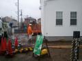本日、雨の中着工しました