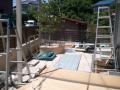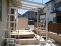 そして現在工事中の2件共に良い作品で楽しみです。 日高市・H様邸 植栽を囲うように設置したベンチも仕上がり テラス屋根施工中です。 シェードが特注の為、もう少しかかりますが・・・