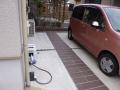 既存のコンクリートの間の芝生をタイル貼りに変えさせていただき、