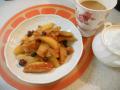 おそらくこれが ブルームーンの見おさめ・・・ 寒風の中 最後のつぼみが頑張っています。 こちらもいよいよラストワン 横顔が 小さいながらもチューリップのようで・・・ シュパリシュホープも おそらくラストワン・・・ いやはや 今年もよく頑張ってくれました。 来年の春まで ゆっくりお休み マザーズディが よく頑張っています シュネープリンセスは ここに来て 花もちがグンとよくなっています。 毎日ほんの少しずつ ゆるんでゆくつぼみです フライパンでくし形に切ったリンゴを バターとシナモンシュガーでソテーしました。 ブランデーにつけおきしたレーズンを 加えます。 アップルソテーも出来上がりです 昨日焼いたコーヒーシフォンにアップルソテーを 添えて・・・ クリスマスホーリー 毎年 このくらいの時期から 実が赤くなります