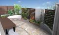 2階バルコニーが真上にあるお庭だったので、上から見ても楽しいお庭になるようデザインしました