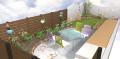 優しい曲線で作られたお庭が広がります。 塀やフェンスで囲っていますので、わんちゃんと一緒に楽しめる お庭になっています