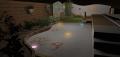 タカショーのカクテルブロック(光るガラスブロック)や タカショーのタイルドライトが光ります。