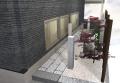お庭の入口が出来ました。 ペンダントのブルーが引き立つように、周りの素材の色トーンを抑えました。