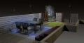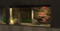 L側、R側の窓から見ると夜はこんなイメージになります。 5本建てた石柱は水面にたつ枯れ木のイメージです。 石柱は前後に間隔を空けて設置すると、見る人が動くたびに 立体的に景色を変えてくれます。 下に置いガラス玉は 月明かりできらきら輝く水面、小さな銀波のイメージです。