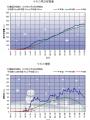 今冬の累計降雪量と今冬の積雪のグラフです雪
