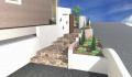 駐車スペースから玄関までのアプローチに 土留も兼ね、塗り壁塀を設置し、階段ステップには 自然石の乱形石が敷設になっています。