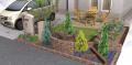お庭の中にはウゥザード・リーヴェン平板を使って、質感を出しました 優しい曲線でゆったりした雰囲気を演出しています。