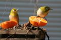 仲良くメジロがミカンを食べてる そこえ・・・・・