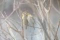 ぽかぽか陽気に誘われてつがいのメジロはお互いの羽を突きあいながら