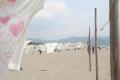 吊るされ 砂浜の風で気持ちよくひらめいております・・・ダウン