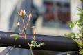 事務所横の手摺りに添って咲きかかってるバラ・・・・・