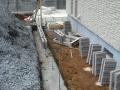 旭区で行われている外構工事の2回目です。 建物前のブロック工事です。 ブロックは基礎が大事 多少の地震でも転倒しないように 鉄筋をしっかりと組んで、ベースの幅も確保して コンクリートを打ちます。