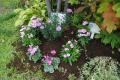 もう夏が終わりましたね。。。 そして、ショウルーム庭の植替えを しました。秋バージョンです。 まずは、秋らしい草花を購入。 . . . もともと植わっていたムラサキシキブの横に 千日紅・カレックスなど植え込みました。 . . . . . . . . ..ピンク色の花でまとめています。 あっ ナデシコ・ミニシクラメンなど。。。 . . . . クレマチス く