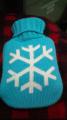 ペットボトルに熱湯を入れる形ですと、熱い上に冷めやすかったのですが、湯たんぽはさすがに冷めにくいです。毛糸で包んでいるので、これだけをふくらはぎの間に挟んで暖をとっています。