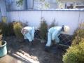 バランス良く、ドウダンを植栽作業をしていますウインク(男の子)
