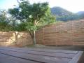 デッキからの眺め、、、 紅葉する山々の木々を眺められる抜群のロケーションに 緩やかな傾斜のついたスペースにモミジの大木をメインに 木製フェンスで囲まれた空間が出来ました