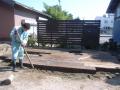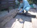 阿賀野市Y様邸の枕木テラス造りの施工状況です バックホウで枕木が入る部分の土のすき取りです。 あっという間に平らになっていきます すき取ったあとは砂を敷いてならします。 枕木を一本ずつ運び水平器を当てながら叩いたり突いたり、 まっすぐかつ平らに、、、 枕木を一本一本丁寧に据えていきます。 一番大事な所です。 さらに、動かないように要所要所にかすがいを打っていきます。 これでばっちり 真ん中の開いたスペースには石張りをする予定です その様子はまた明日