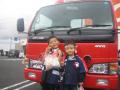 終わった後は、いとこと消防車の前でパチリッ お菓子をもらって大満足な息子でした