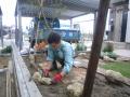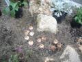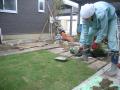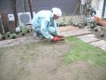 レイアウト終了 石の足元にはクロッカスやムスカリなど小球根も忍ばせます 春がますます楽しみになります お庭の中央部に芝生を張って楽しみます スコップで叩いて土となじませた後は砂で目砂をいれていきます こうする事で芝生の根付きを良くし芽が揃ってでてきます