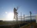 昨日は夏にお庭作りさせて頂いた、 五泉の「葛g田印刷所」様に 新たに御衣黄桜の植栽とお庭の冬囲いに行ってきました 夏や冬に移植をおこなう際に必要なのが「幹巻き」という作業です。 夏の強い陽射しや冬の冷たい外気から移植直後で衰弱している 木の幹本体を守る目的でおこなうものです。 いさおさんの熟練の手さばきで次々と巻いていきます あらかじめ鳥居支柱を建てて、 植え穴に堆肥やAGロック(硬質流紋岩発泡物)等を加え土壌改良 植え込み後は水極めを行います 土を半分ほど埋め戻し、ホースで水を加えながら突っついたり、 あるいはスコップで突っついて 泥状になった土が根鉢の下の方にまで入るよう念入りに行います こうすることで根と土の活着が良くなり、根の張りも良くなります 一番大事な作業ですね 添え木を付けて三カ所前後止めて、 風が吹いて折れたり、痛むのを防ぎます