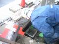 U字工にパイプを通すために電動ピックで穴をあけている最中デジカメ