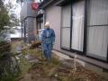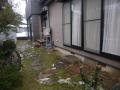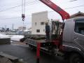 今日も昨日に引き続き阿賀野市T様邸へ クレーンを使い既存の飛び石を撤去している所です 今後は那智黒砂利の洗い出しのアプローチを造る予定です