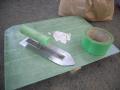コテや練り板はあらかじめ養生テープを張っておくと、