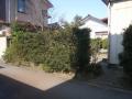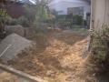 ツゲの生垣がありましたが、 その奥に駐車スペースを確保するため、 樹木伐採、伐根、残土のすきとり、 砕石の敷きこみを行なってきました