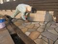 石をカットしたり、モルタルを敷いて平らに据えたり、 目地を詰めたら綺麗にふき取っていったりと 手間がかかる作業ばかりですが、 手間をかけた分だけ素敵になるのも石張りの良さですね