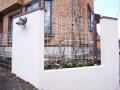 フェンスの足元には花壇を設けました これからバラの花が咲き誇る美しいフェンスに変身予定です こちらは、額縁のように見立て、 まるで一枚の絵のように見せるコーナーです フェンス越しのアオダモの幹が美しいです バラの花が咲く頃が楽しみですね