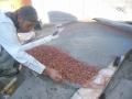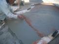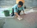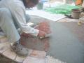 モルタルを平らに均したあとにレンガチップを均一に並べていきます ムラにならないように、重ならないように均一に、 出来上がりの模様になるため丁寧に行います コテで叩いてモルタルと平らにしていきます でこぼこにならないようにこちらも丁寧に行います