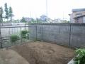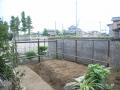 ヒイラギモクセイを植えこんで、竹に結束、 整地をして完了です