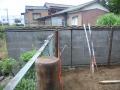 ビフォア まず始めに杭木を建て込みます。 水糸で通りと水平をだして曲がらないように 竹を横に渡し 植える舞台オッケ〜