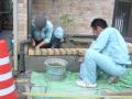暑い中での作業は、モルタルが早めに乾くので