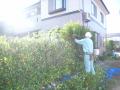 レッドロビンの生垣をスカッと丁寧に刈り込んでいくかずき氏ニコニコ(男の子)