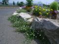 そんな暑〜い日が続く新潟ですが ブルーサルビアやイソトマのさわやかな花色の足元に リッピア(ヒメイワダレソウ)が元気に咲いていましたよ〜 石の隙間に枝を伸ばし、より自然な雰囲気になっていました こちらは炎天下のアスファルト際でも元気に咲いていましたよっ