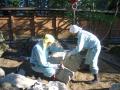 さてさて、今日は阿賀野市S様邸のお庭改修工事 石組みの作業に行ってきました 元々お庭にあった秋田石(鳥海石)を据え直し、 石を組んでいきます 図面はありますが、図面通りの石の形や大きさは無いため ラインに合わせ、石と石の隙間が開かないよう据えていきます 長年の経験や感覚が必要で、まさに腕の見せ所と言った所です。 いさおさんと社長のコンビは次々と石を据えていき、 さすがプロって感じです