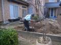 今日から、新発田市S様邸のお庭改修リガーデン工事が始まりました音符