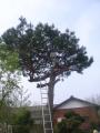 機械が届かないため、上に登り、短く切りながら下ろしていきますグッド