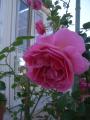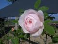 今日も朝から、爽やかな青空 スタジオ前のばらの花々が一斉に咲き始めました 奥がギーサヴォア、手前はシャンテロゼミサトのオベリスク仕立て
