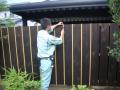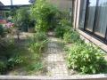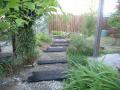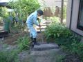 さてさて、今日は 阿賀野市K様邸のお庭改修工事を行っています カーポート裏と敷地の周りに目隠しのため 杉板とエコ竹を使った大和塀の施工です。 柱建て込みと胴縁の取り付け完了。 杉板とエコ竹を取り付けています 電ドラで下穴を開け、釘で止めていきます なかなか手間のかかる作業なので楽しいです カーポート裏の大和塀、完成です 両面張りなので後ろから見てもこんな感じで渋いです 続いてアプローチの改修は 既存のネットストーンを再利用し 枕木と組み合わせたアプローチしていきます まずは枕木の据え付け 石の寸法があるため、計算された間隔になっています ん〜なかなかの重労働 日陰なのがせめてもの幸い(笑) 枕木には防腐剤を塗って、砕石の路盤を造りました 明日はネットストーンの据え付け予定です モルタルで据えていくので、 強度はもちろん雑草の発生も無くなって 歩きやすいアプローチになると良いですね